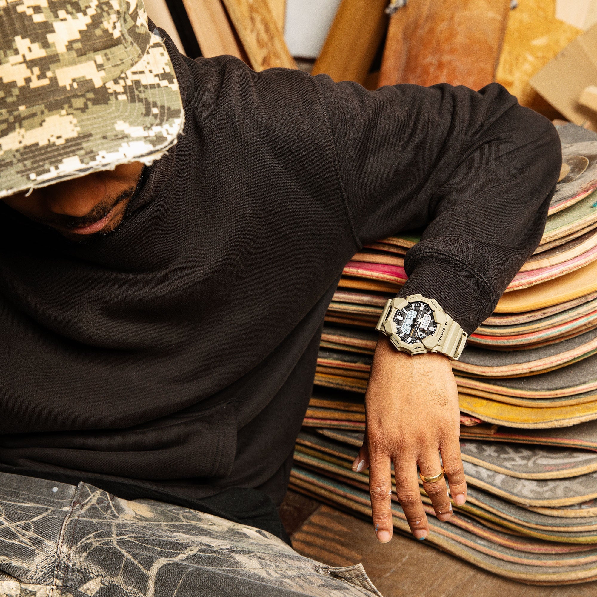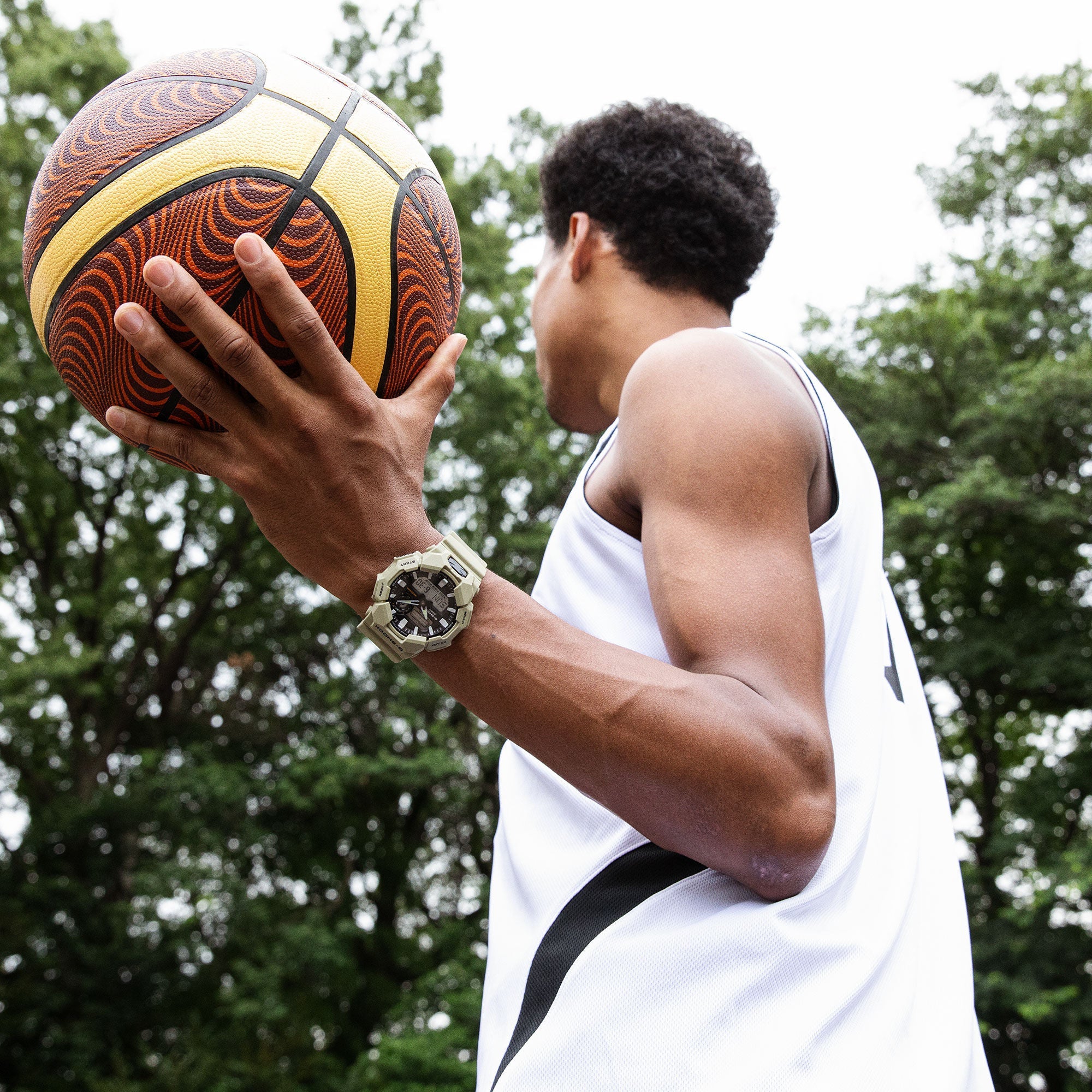 Enjoy a life of fewer battery changes with a large-case G-SHOCK with a 10-year battery you won’t have to worry about for ages. The analog-digital GA-010 delivers handy features like world time and stopwatch, as well as a high-brightness LED light, which can be easily accessed from the large button on front of the case, ensuring visibility even in the dark. Made with bio-based resin and equipped with a 10-year battery, this G-SHOCK is great if you want to reduce environmental impact. Available in a selection of black-based workstyle color schemes for a cool design that moves with ease from casual settings to work situations.