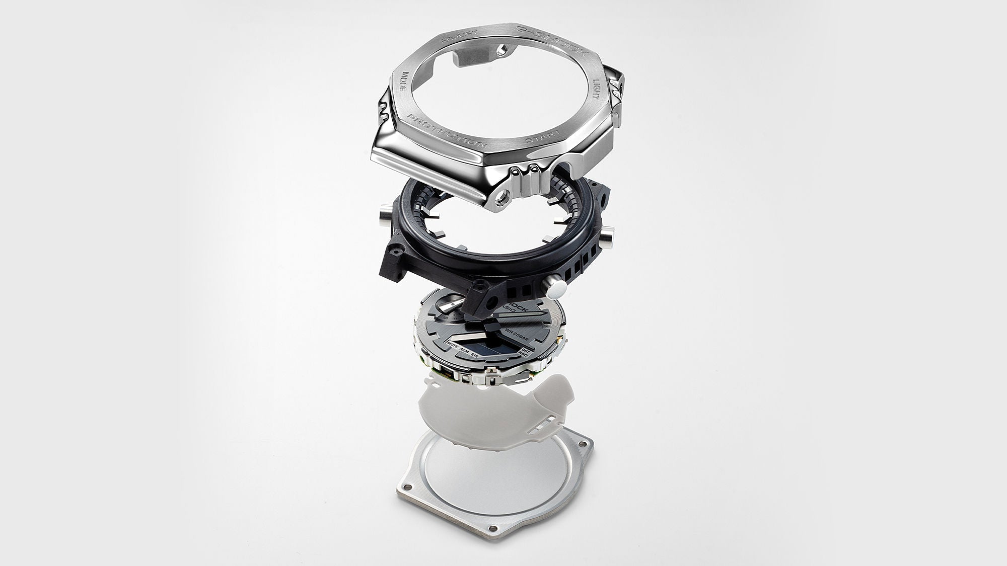 G-STEEL daring meets sophisticated gleam in monochromatic silver color scheme. The monochrome aesthetic pairs a metal bezel colored silver with a newly developed tough silicone band in the same color. The surface of the band is protected with a urethane sheet finished with vapor deposition in silver to achieve a metallic glimmer in a band that feels great against the skin. Soft and comfortable to wear, with a glittery metal look, these timepieces are fashion items that take you wherever you want to go. Choose your favorite — the iconic GM-5600 with its classic digital style.