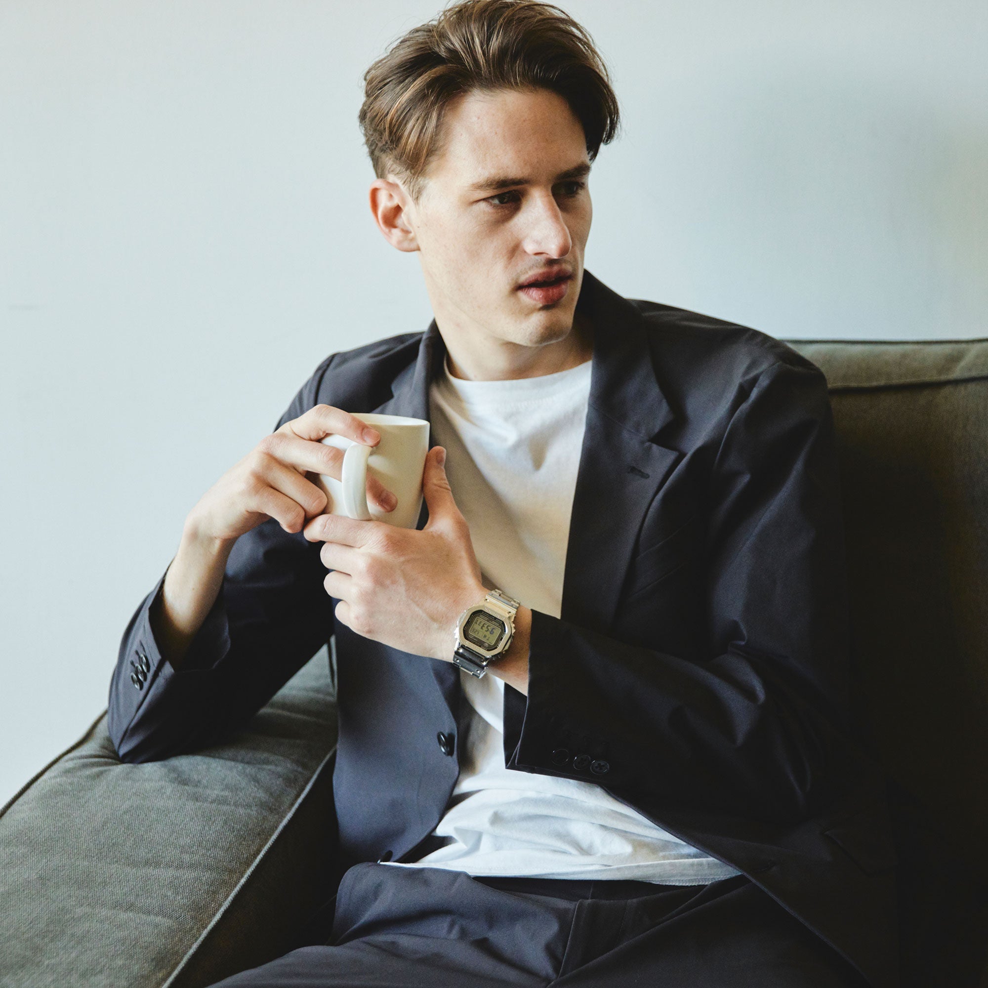 The DW-5000C is the original G-Shock model from 1983. The GMW-B5000 Series has inherited its characteristic square design and been given the full metal treatment along with upgraded features including smartphone linking. The watch has been given a full-metal case by using a shock-resistant fine resin cushioning material inserted between the case and the sturdy stainless steel metal bezel. High-density mounting technology also allows the watch to maintain its size. The back of the watch features a solid Screw Lock Back and has been DLC treated for resistance to wear. The metal band has been dimple processed, inheriting the Resin Band design of the original. Visibility too has been enhanced via use of a film solar cell and STN-LCD (liquid crystal). Function-wise, this model comes with Bluetooth® communications and can link with a dedicated app to obtain precise time information. The watch is also packed with practical features including a time correction system that uses standard time and frequency signals (Multi-Band 6), a reliable source of power in the form of Tough Solar technology, high-luminance Full Auto LED backlighting, World Time and day of the week display in six languages. This is a G-Shock model that stays true to its predecessor while undergoing further refinement through the application of a full-metal design.