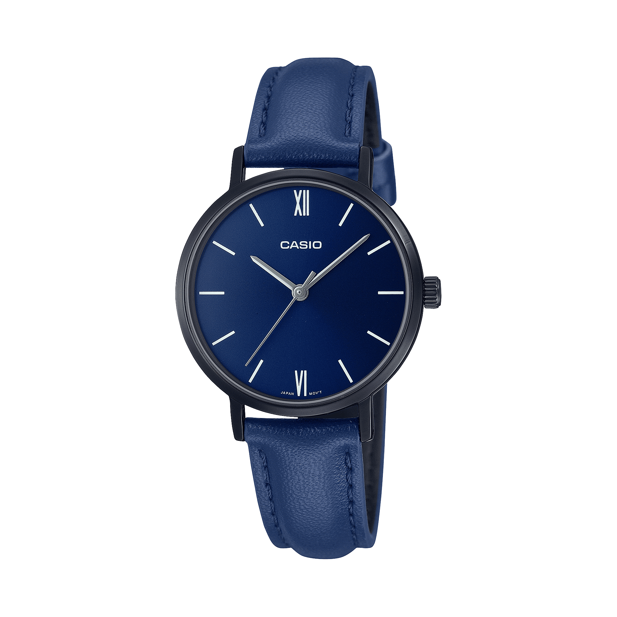 CASIO LTP-VT02BL-2AUDF BLACK IP BLUE ANALOG DIAL BLUE LEATHER BAND WOMEN'S WATCH A2001