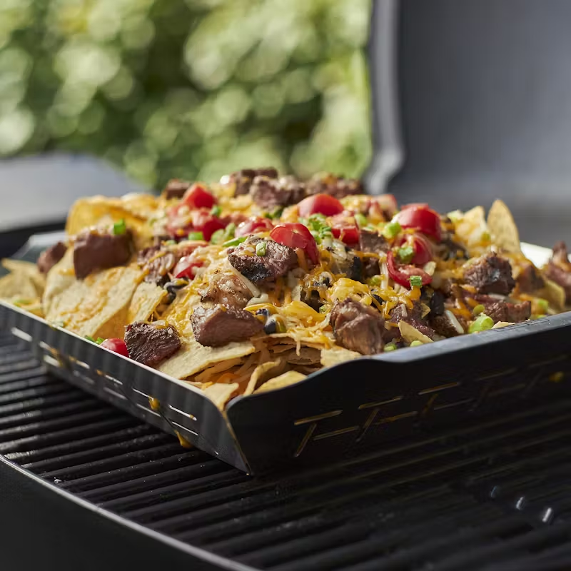 Vibrant, grilled vegetables scattered atop a crispy pizza. Charred zucchini and squash that compliment your favorite autumn feast. Or an array of diced veggies delicately seared to bring out flavors you never knew existed. Use the Deluxe Grilling Basket to prepare sliced veggies or even small pieces of meat with absolute ease.Fits: All Weber charcoal, gas, and electric grills