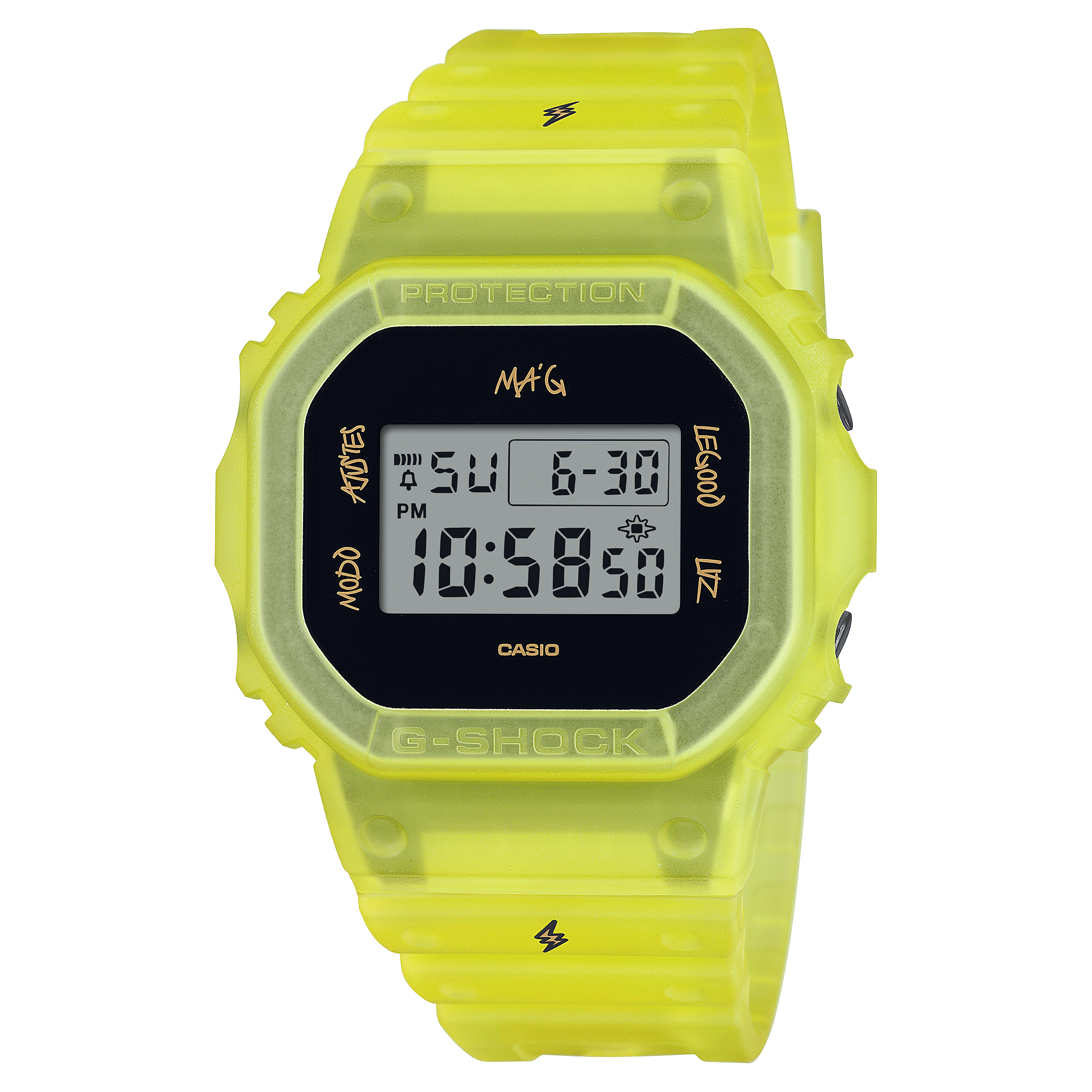 Growing up, J Balvin always gravitated to G-SHOCK, associating the watch with a warm sense of empowerment, and has chosen it as his preferred accessory ever since he was younger. As J Balvin’s passion for art, culture and fashion continued to evolve over the years, the G-SHOCK style remained a constant — so it is no surprise that this J Balvin-Casio collaboration yields a very special watch. For the first time ever, G-SHOCK and J Balvin proudly come together to introduce an irresistible inspired G-SHOCK design — marking the global brand’s first partnership with a Latin artist. The Colombian artist has cemented his name as a global superstar, releasing countless global hit songs. Over the course of his illustrious career, J Balvin has amassed an extensive list of accolades and revolutionized the course of Latin music. For the collaboration, the design incorporates the text ‘MA’G,’ his phrase for those closest to him, and mode indicators handwritten in Spanish by J Balvin himself, further adding that personal touch and making the MA G-SHOCK the first-ever watch to use Spanish text. The DWE-5600 model comes with interchangeable bezel and band in two different colors — translucent matte yellow and classic black, with the watch band, case back, and LED backlight all featuring a logo based on his signature Lightning Bolt. Together with the black translucent packaging, this singular timepiece embodies the pursuit of the ultimate experience, which the worldclass musical artist and G-SHOCK share.