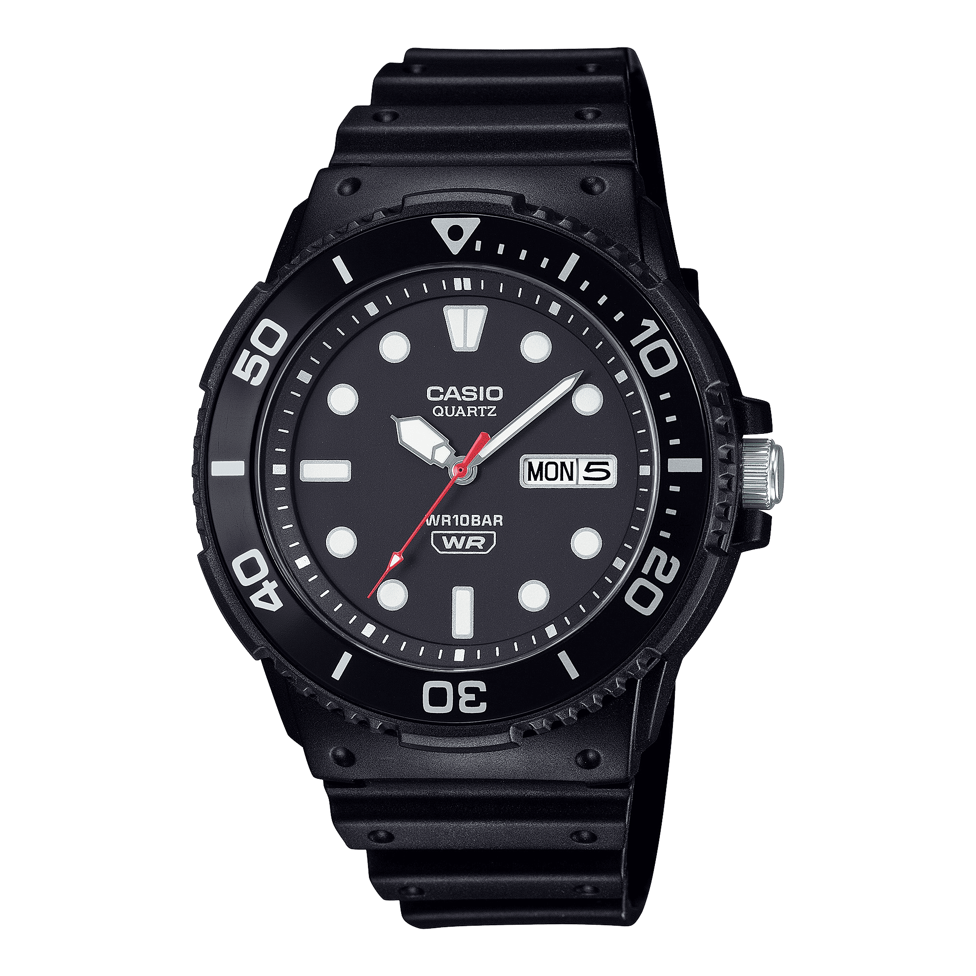 Introducing a marine-inspired analog watch with a rotating bezel.